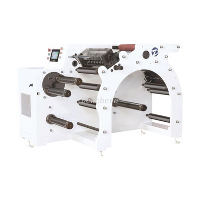 SR series automatic slitting machine mainly for narrow web label slitting.Turret rewinding unit, it saves time for change the finish rolls.It's suitable for different kinds size of rewinding core, with meter counter, number counter and less material stop machine function.
