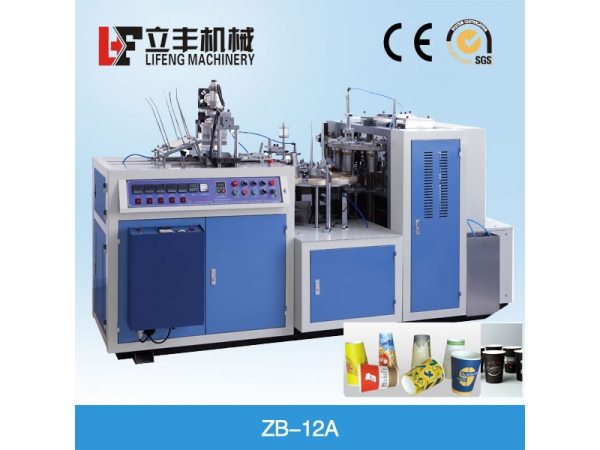 ZB-12A paper cup machine is an automatic, multi-working station machine. Our machine produces single coated paper cups through the procedure of automatic paper feeding, sealing, oiling, bottom punching, heating, curling and cup discharge. Our one-sided PE paper cups are popular for coffee, ice cream, etc.